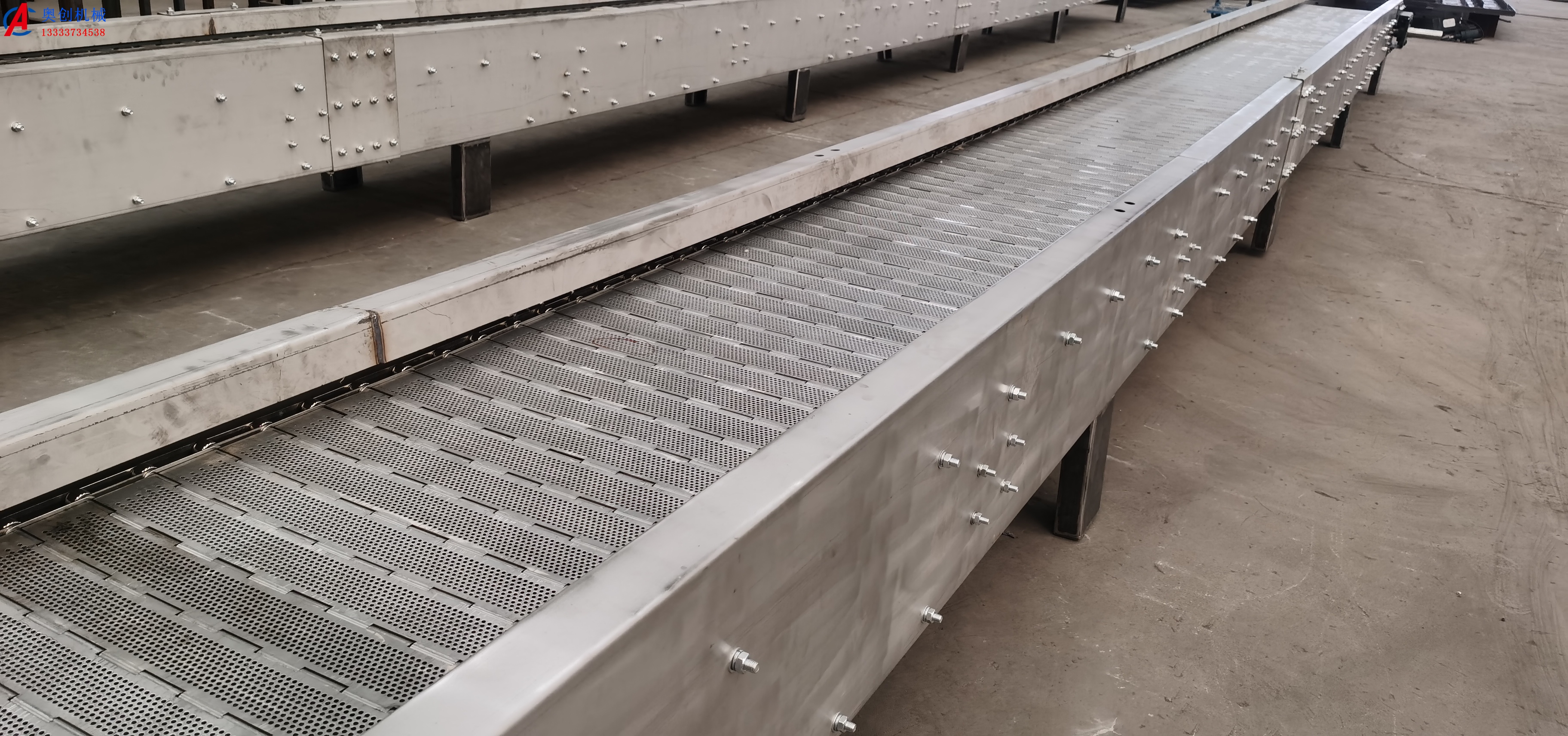鏈板輸送機是一種以標準鏈板為承載面,由馬達減速機為動力傳動的傳送裝置。鏈板式輸送機由動力裝置(電機)...